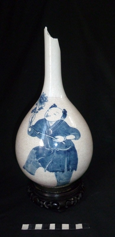 Le haut du goulot de cette bouteille asiatique, endommagé, a été restauré à l’aide d’une technique illusionniste.