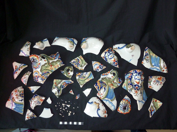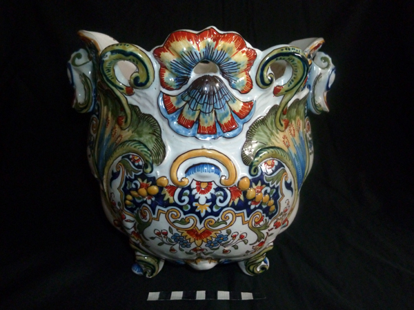 Ce ravissant cache-pot en faïence de Rouen est arrivé à l’atelier en plusieurs fragments, transformant sa restauration en un véritable puzzle. Grâce à un travail minutieux de réassemblage et de restauration illusionniste, la pièce a retrouvé toute sa cohérence visuelle et son charme d’origine, typique des productions rouennaises.