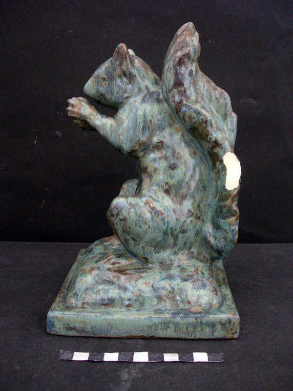 Ce petit écureuil, issu de la célèbre manufacture de Pierrefonds, a bénéficié d’une restauration illusionniste minutieuse. L’intervention a permis de redonner à la pièce son aspect d’origine, tout en préservant les détails fins de sa sculpture.