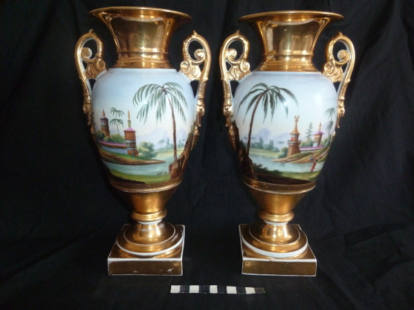 Cette restauration illusionniste a permis de réunir à nouveau une très jolie paire de vases en porcelaine de Paris.