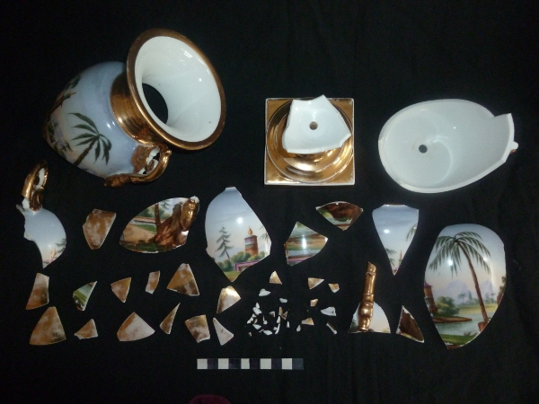 La précision du décor et la finesse des dorures en aplat ont représenté les étapes les plus délicates, mais essentielles pour restituer tout l’éclat de ces objets d’art raffinés.