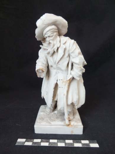 Cette délicate statuette en biscuit de porcelaine, attribuée à Capodimonte, présentait de nombreuses détériorations. Une main manquante, en particulier, altérait l’harmonie de l’ensemble. Après un travail de restauration minutieux, la pièce a retrouvé toute sa finesse et son charme d’origine.