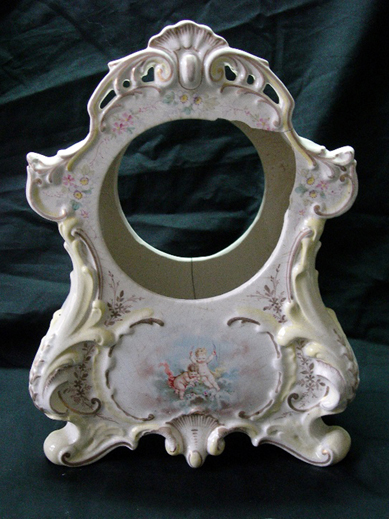 Cette pendule ancienne, endommagée par d’importantes fêlures et des pertes de matière, a bénéficié d’une restauration illusionniste complète. L’intervention a permis de reconstituer les zones manquantes et de masquer les altérations, tout en respectant le style et l’équilibre esthétique de la pièce d’origine.