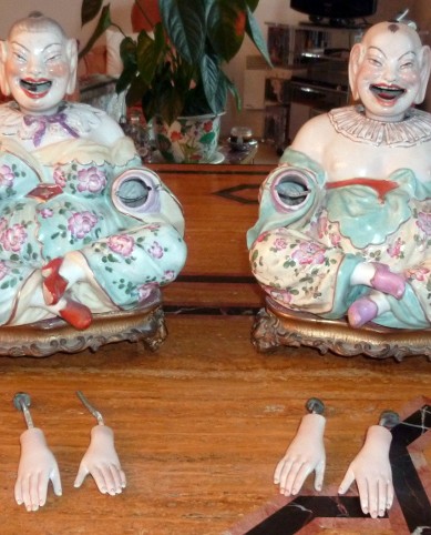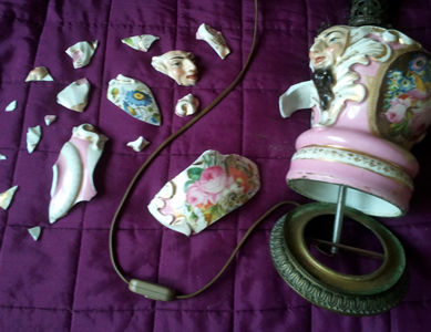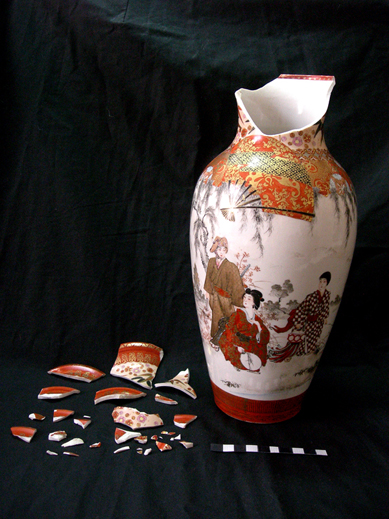 Suite à une chute de son support en bois, cette élégante vasque de style Empire s’est brisée en de nombreux fragments.